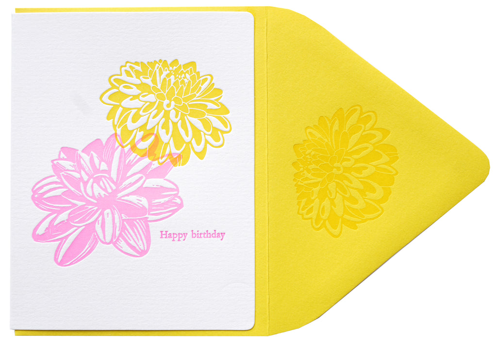 - Comes with a smooth, high-quality A2 envelope in pink or yellow, dahlia printed on flap